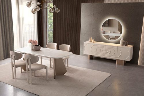 Yemek Odası Takımı: Aynalı Konsol – Masa ve 6 Sandalye