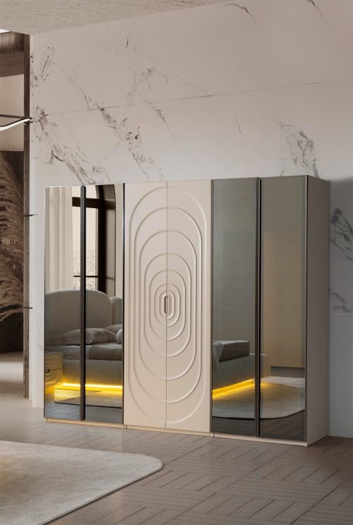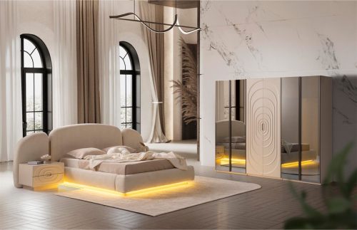 Yatak Odası Takımı: Dolap – Bazalı Karyola ve Başlık – Aynalı Şifonyer ve Komodinler