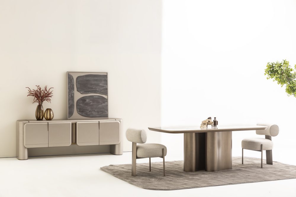 Luis Yemek Odası, İnegöl Mobilyası’nın en seçkin tasarımlarıyla salonlarınızda misafirlerinizle keyifli vakit geçirmenizi sağlayacak yemek odası takımı masa, sandalye, konsol ve aynadan oluşmaktadır.