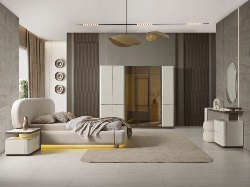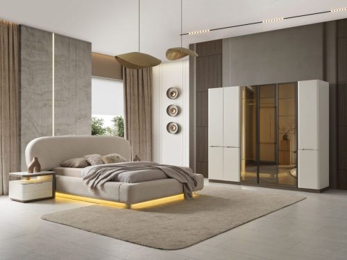 Yatak Odası Takımı: Dolap – Bazalı Karyola ve Başlık – Aynalı Şifonyer ve Komodinler
