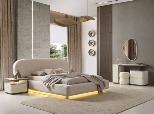 Vega Yatak Odası, en trend yatak odası tasarımlarını evinizle buluşturuyor. İnegöl mobilya kalitesini yansıtan yatak odası takımı dolap, şifonyer, ayna, komodin ve bazalı karyoladan oluşturmaktadır.