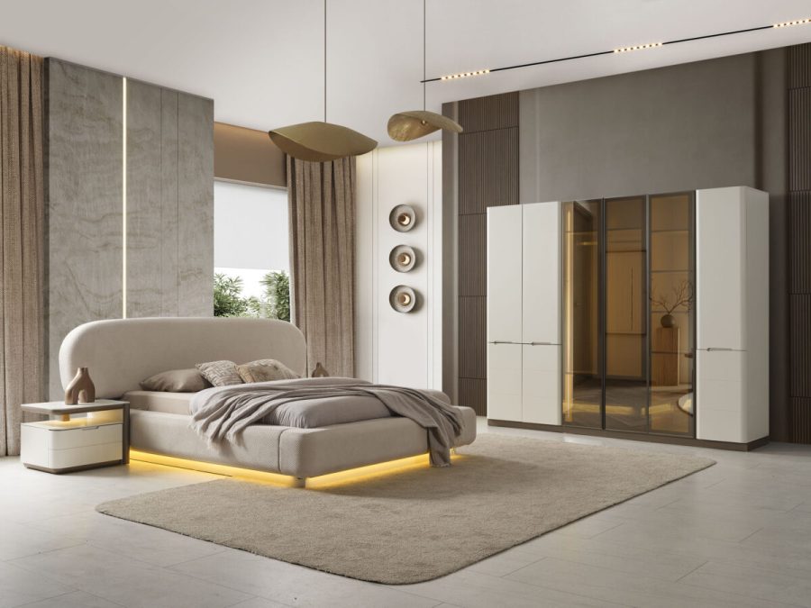 Vega Yatak Odası, en trend yatak odası tasarımlarını evinizle buluşturuyor. İnegöl mobilya kalitesini yansıtan yatak odası takımı dolap, şifonyer, ayna, komodin ve bazalı karyoladan oluşturmaktadır.