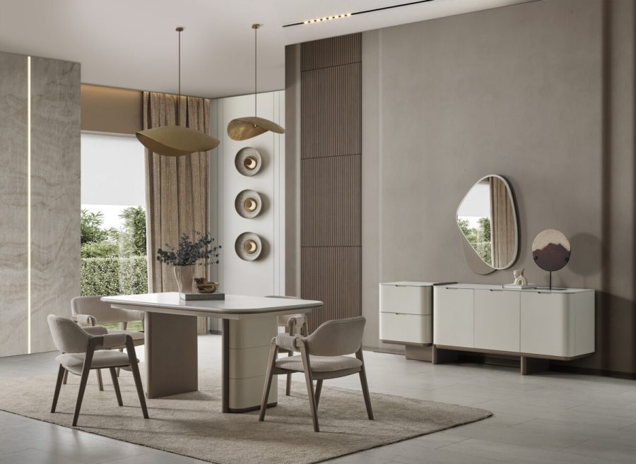 Vega Yemek Odası, İnegöl Mobilyası’nın en seçkin tasarımlarıyla salonlarınızda misafirlerinizle keyifli vakit geçirmenizi sağlayacak yemek odası takımı masa, sandalye, konsol ve aynadan oluşmaktadır.